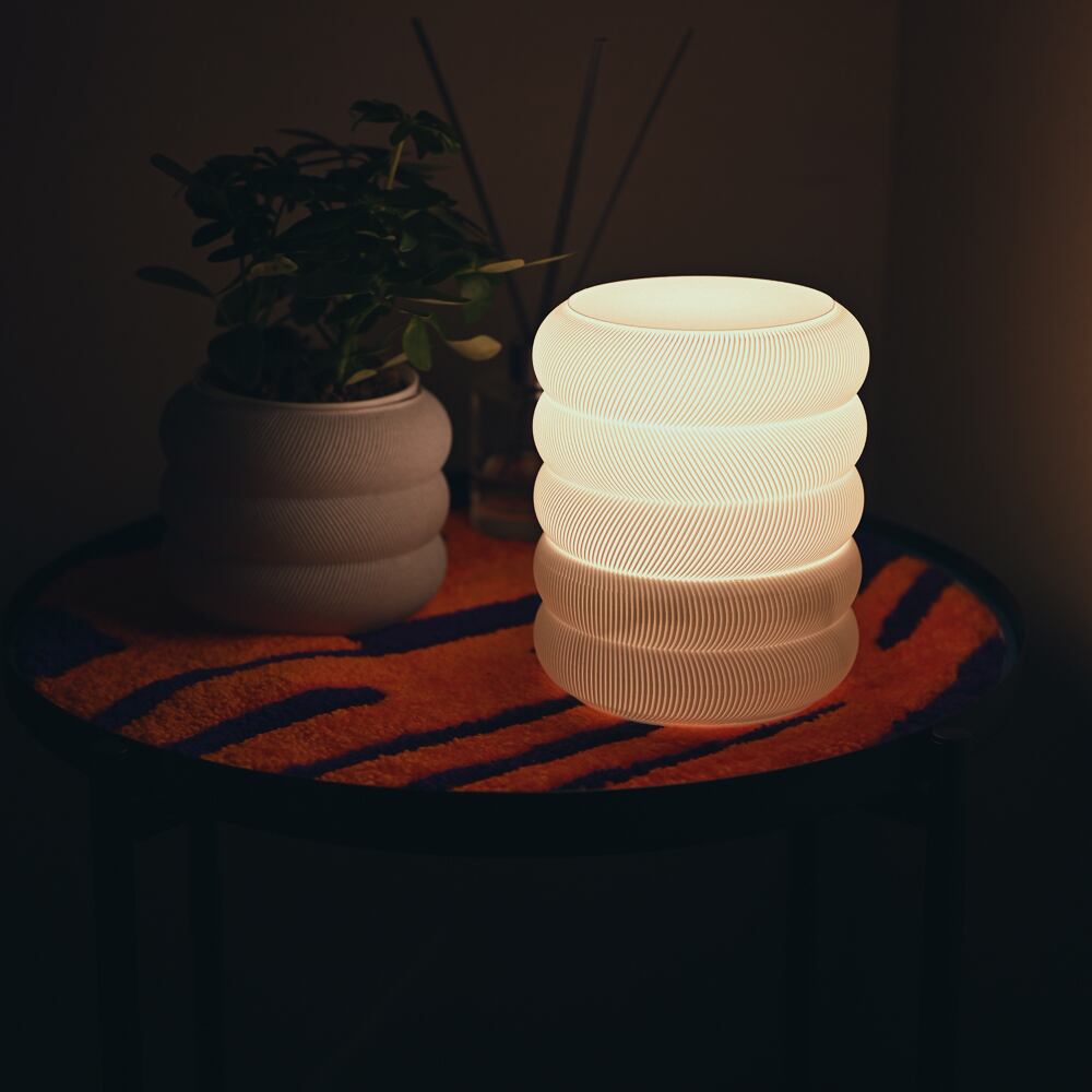 やわらかな光の流れが空間を彩る、3Dプリント製の照明。