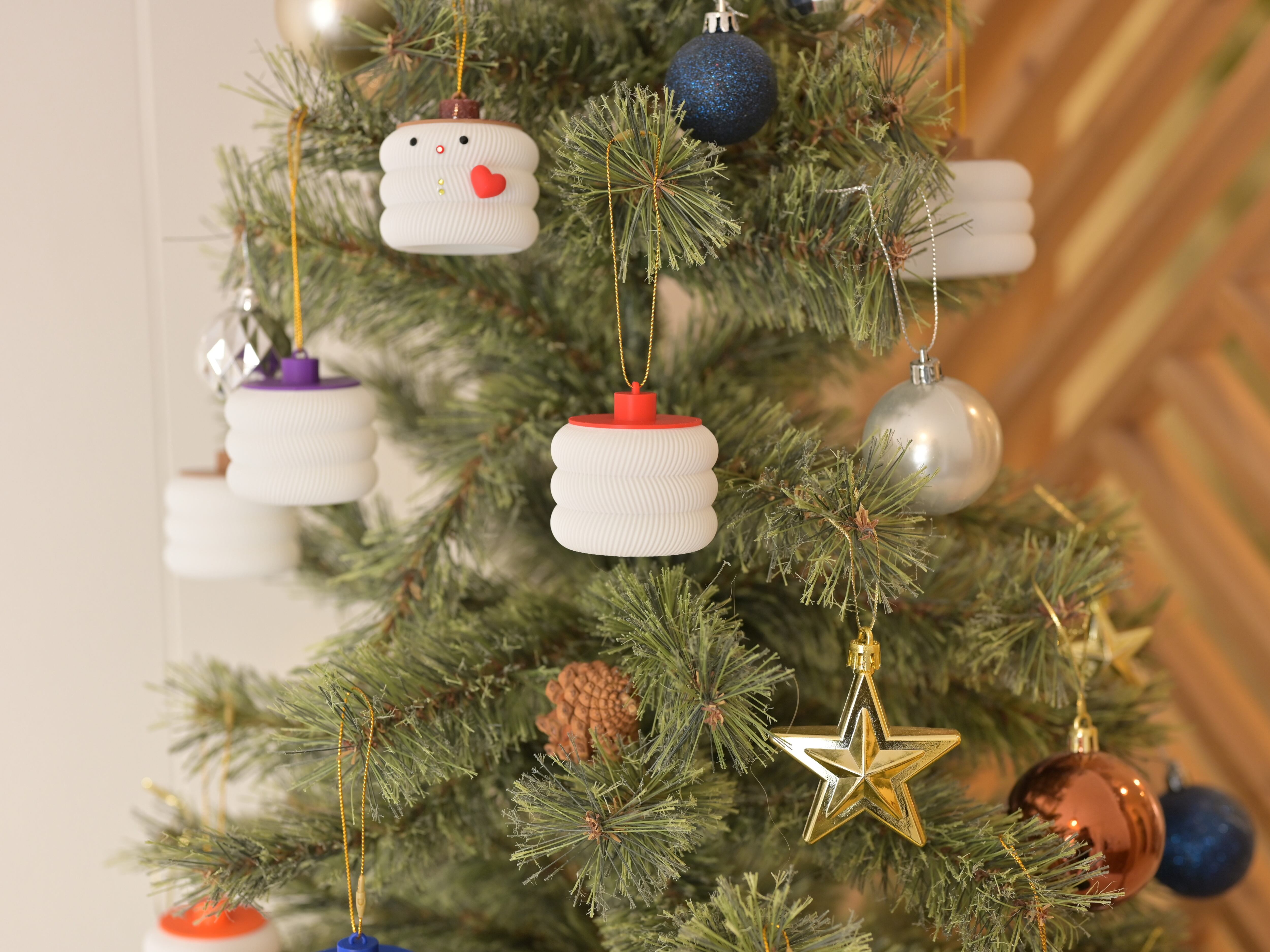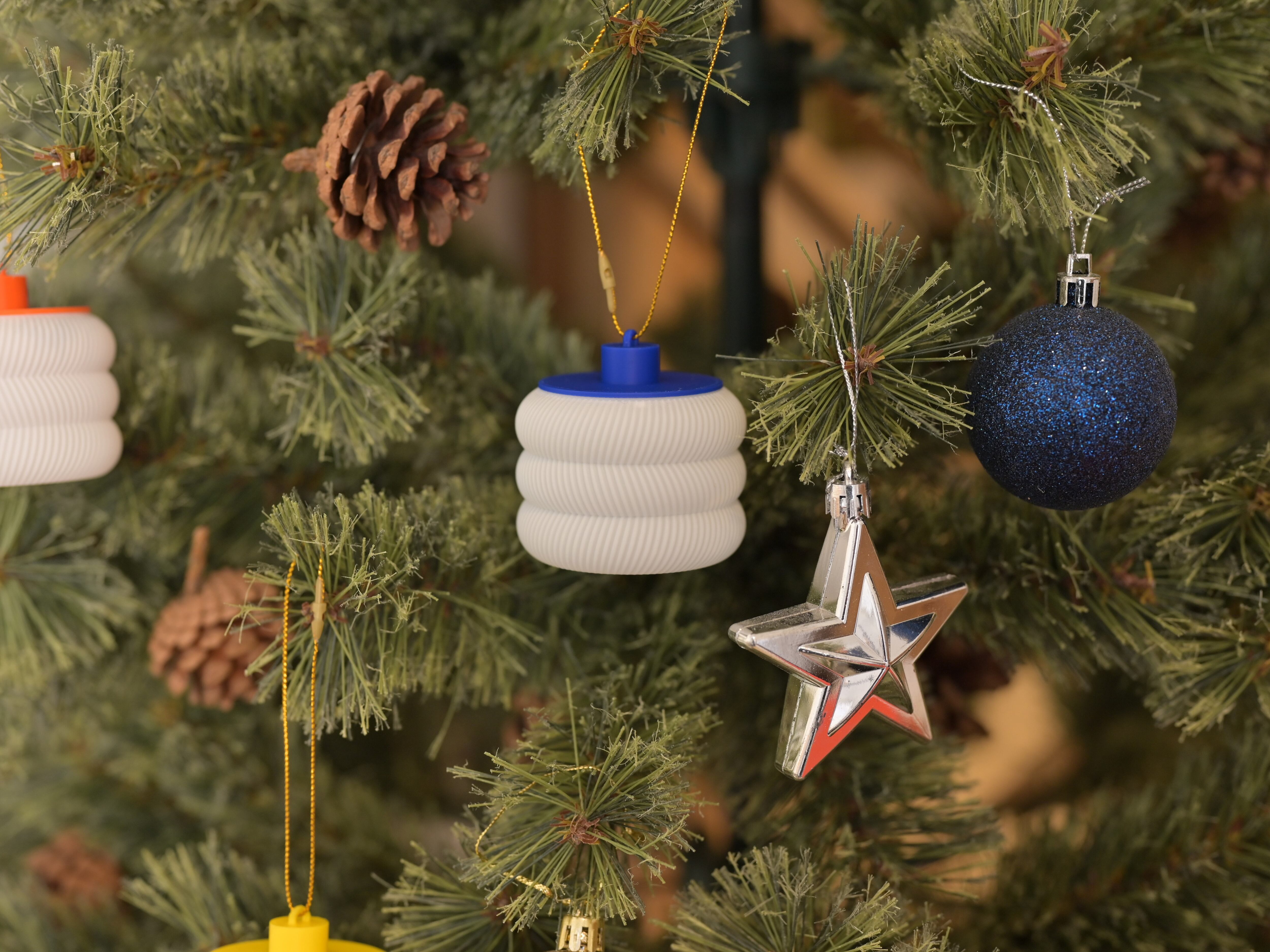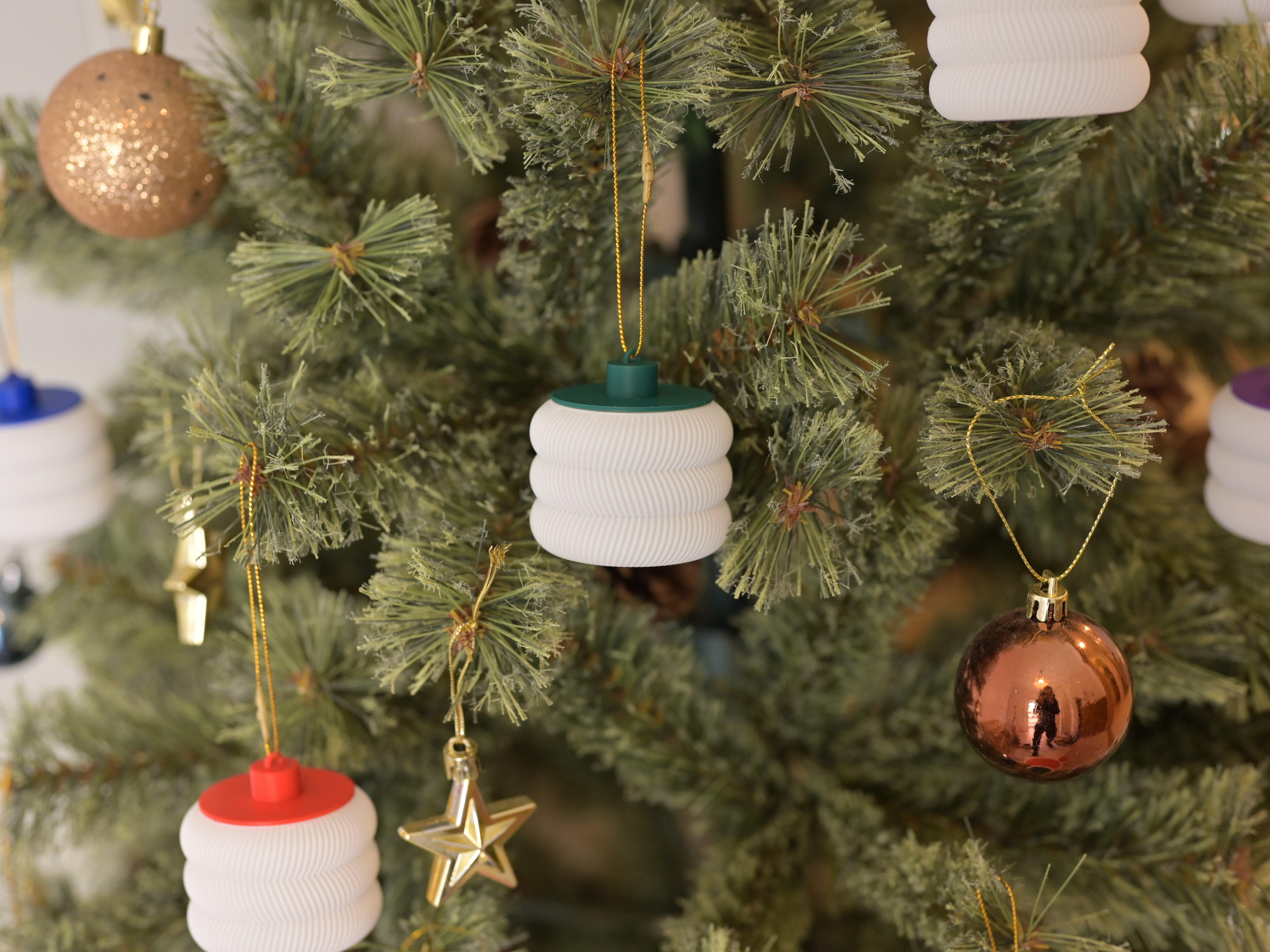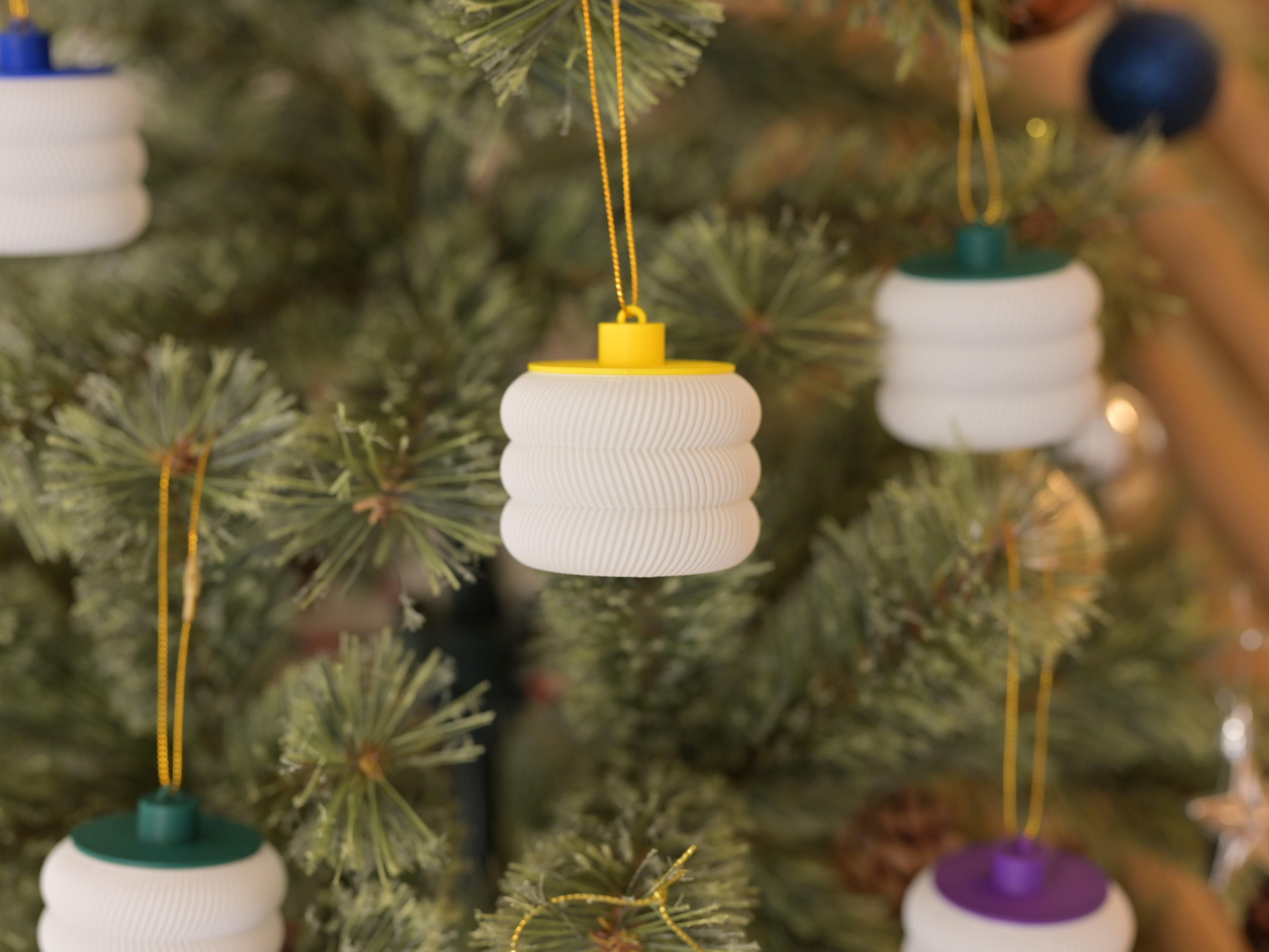 ころんとしたランプ型のシルエットと、細かなリブ模様が特徴の3Dプリント製クリスマスオーナメントです。